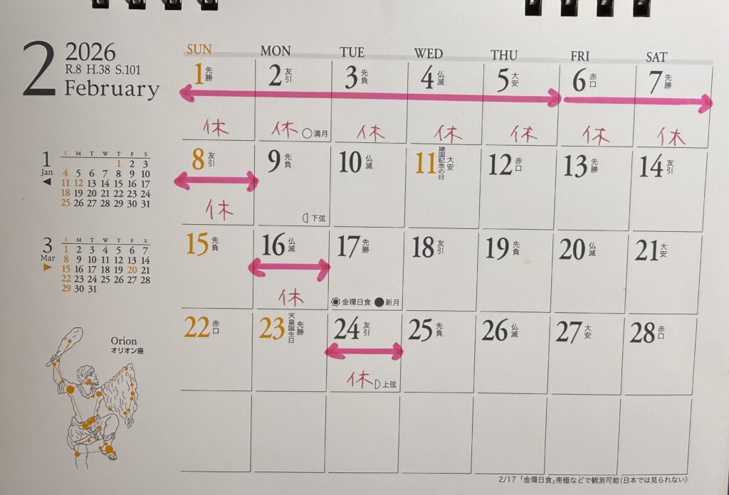 2月のお休みは