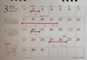 前半に、私自身の体調の都合で やや長めにお休みをいただきます。 2月のお休みは …